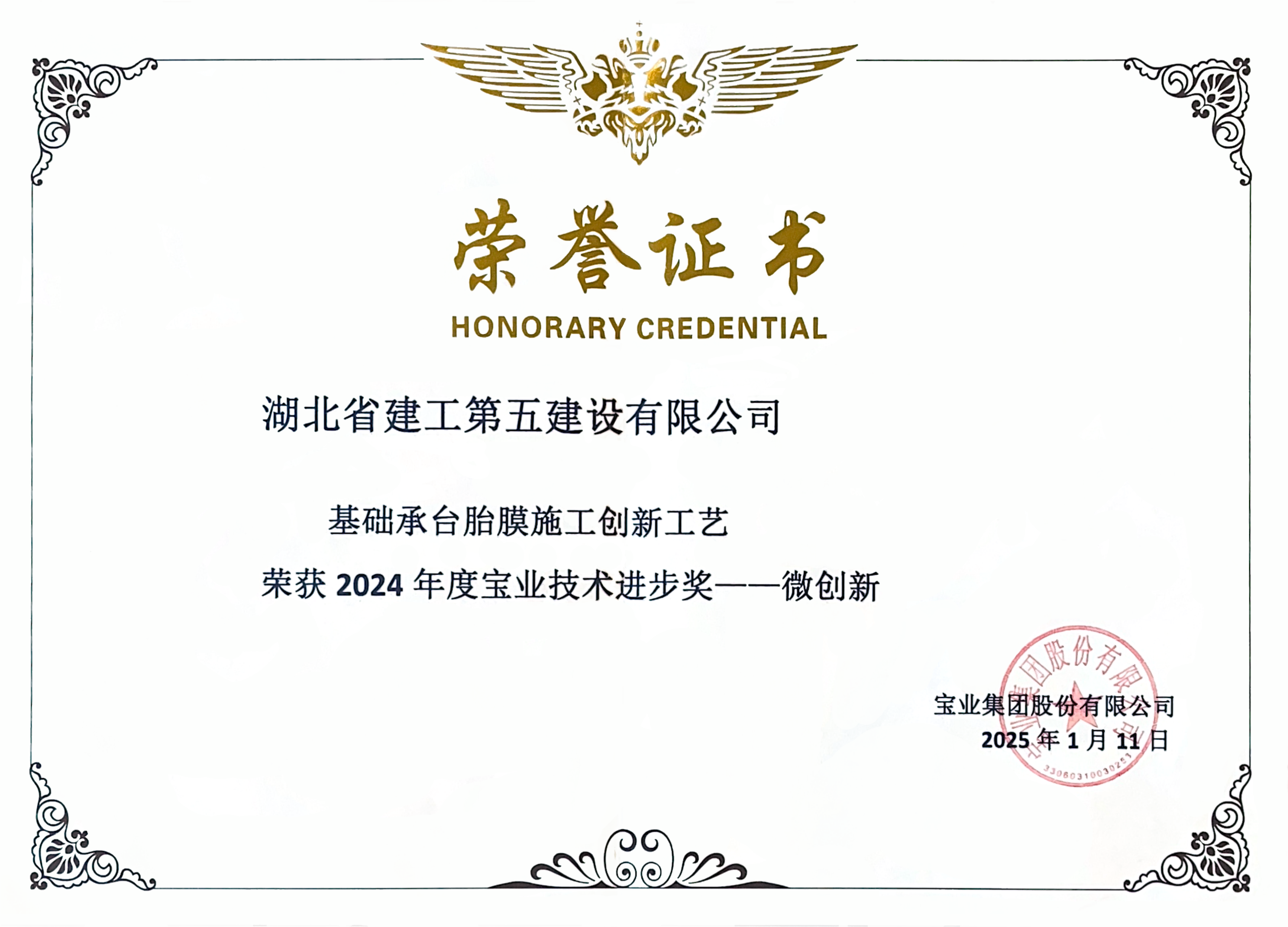 - 2025-01-16湖北省建工第五建設(shè)有限公司榮獲寶業(yè)集團2024年度寶業(yè)技術(shù)進步獎微創(chuàng)新獎...[圖]